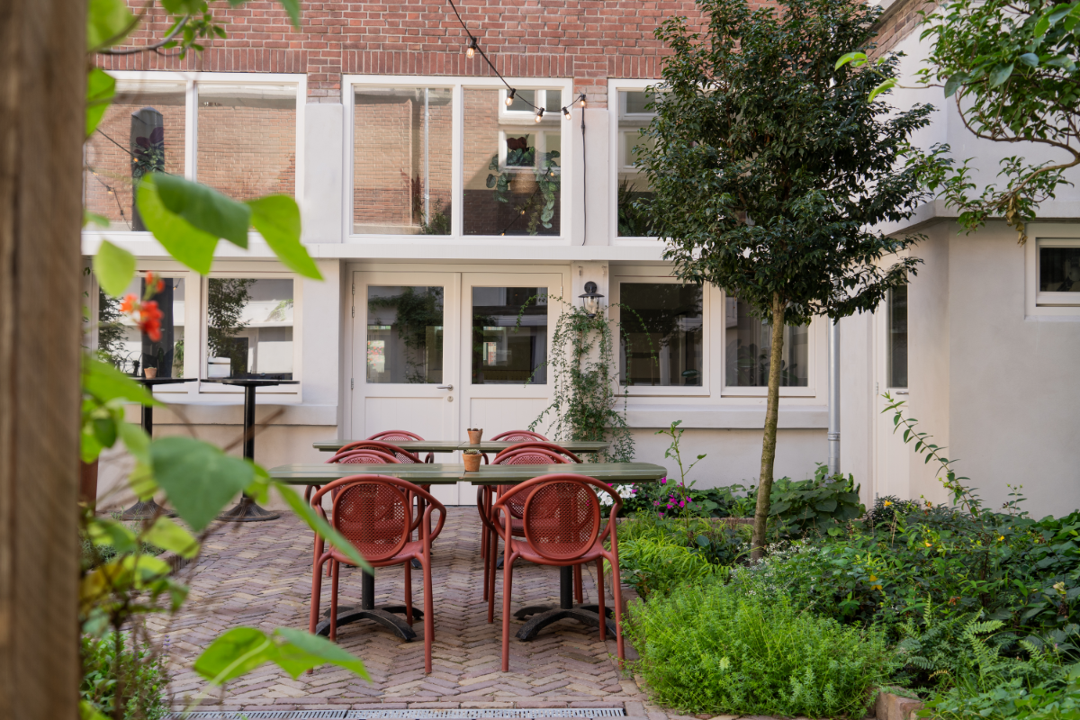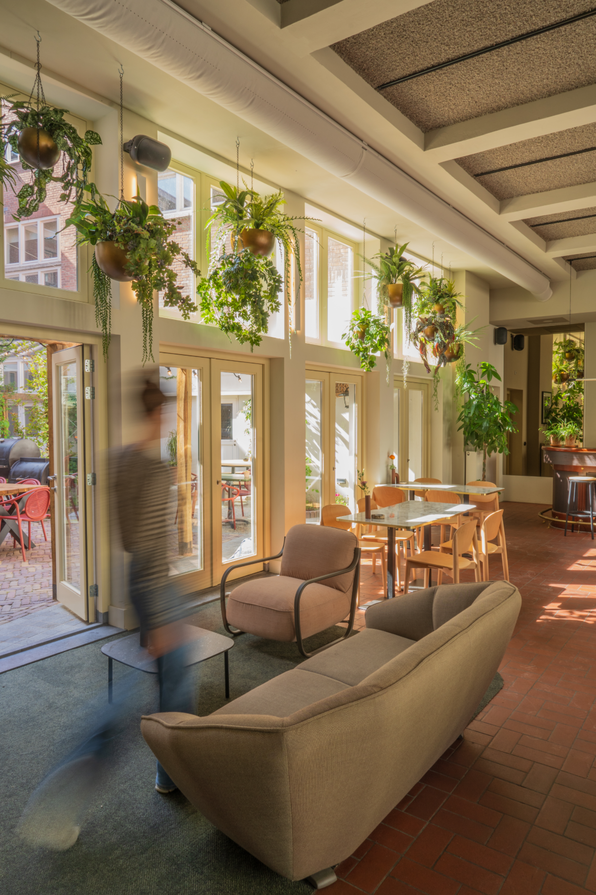 De Stadsherberg is een ‘huiskamer’ om in te ontspannen. We hebben de oude en rijke geschiedenis gecombineerd met een nieuwe uitstraling. Herkenbaarheid voor iedereen die er vroeger kwam, in combinatie met een frisse uitstraling. De oude bar is behouden, het tegelwerk achter de bar is afgeleid van de oude glas-in-lood ramen en een mooi uitzicht op de binnentuin.